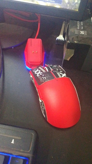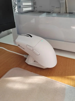 Tri-mode wireless mouse with RGB, magnetic dock, and rechargeable battery for uninterrupted gaming sessions.